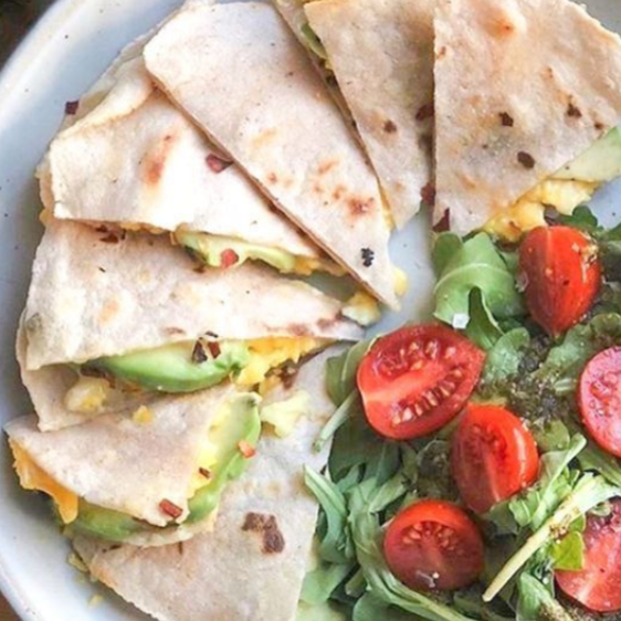 Orden de 2 quesadillas doradas, preparadas al momento con queso y proteína a elegir, acompañadas de ensalada fresca al gusto con aguacate y salsa.