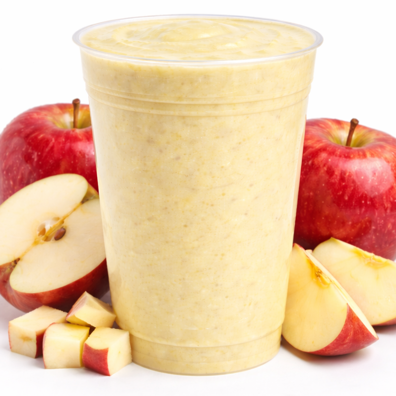 Licuado de manzana preparado al momento con fruta natural, leche, canela y vainilla, sin concentrados ni polvos. Puedes hacerlo grande (900 ml) o agregar ingredientes como frutos rojos, nuez, almendra, avena o arándano, además de elegir tu tipo de leche y endulzante.