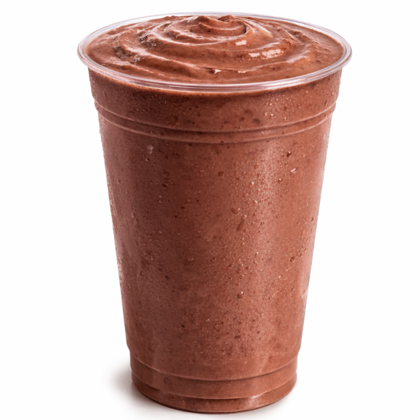 Licuado de chocolate preparado al momento con cacao, leche, canela y vainilla, sin concentrados ni polvos. Puedes hacerlo grande (900 ml) o agregar ingredientes como frutos rojos, nuez, almendra, avena o arándano, además de elegir tu tipo de leche y endulzante.