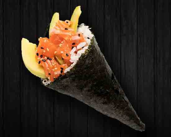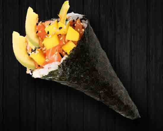 1 pz. Salmón fresco, mango, pepino y sésamo.