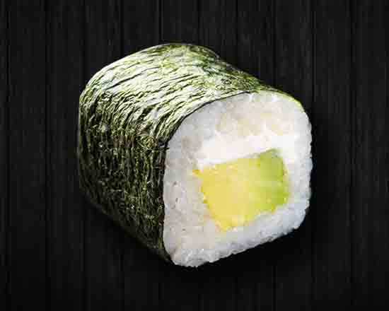 La expresión mínima del rollo de sushi. rollo de aguacate y philadelphia envuelto en alga.