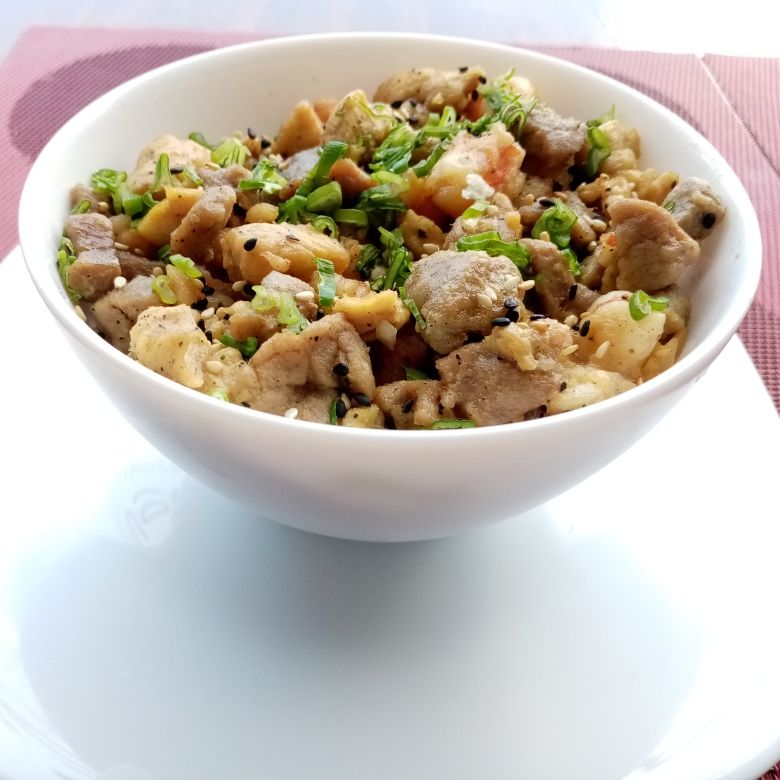 280 gr. 👌Nuestra versión del típico arroz frito japonés❣️ con verduras mixtas y el ingrediente a elegir, todo salteado y sazonado con salsa de soya original importada japonesa. Servido con cebollín y sésamo. ¡Pruébalo! otra de nuestras especialidedes y platillos más vendidos.
