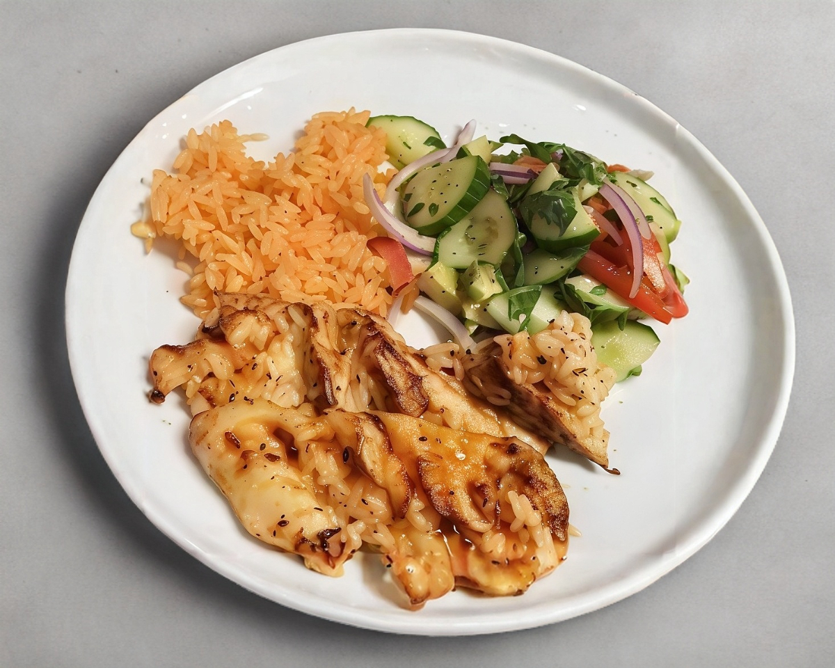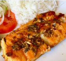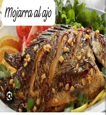 Mojarra al mojo de ajo peso aproximado de 480 gramos, acompañado de arroz ó sopa a escoger y ensalada.