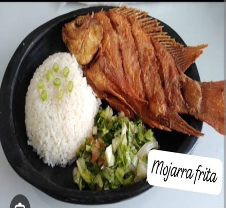 Mojarra frita peso aproximado de 480 gramos, acompañado de arroz ó sopa a escoger y ensalada.