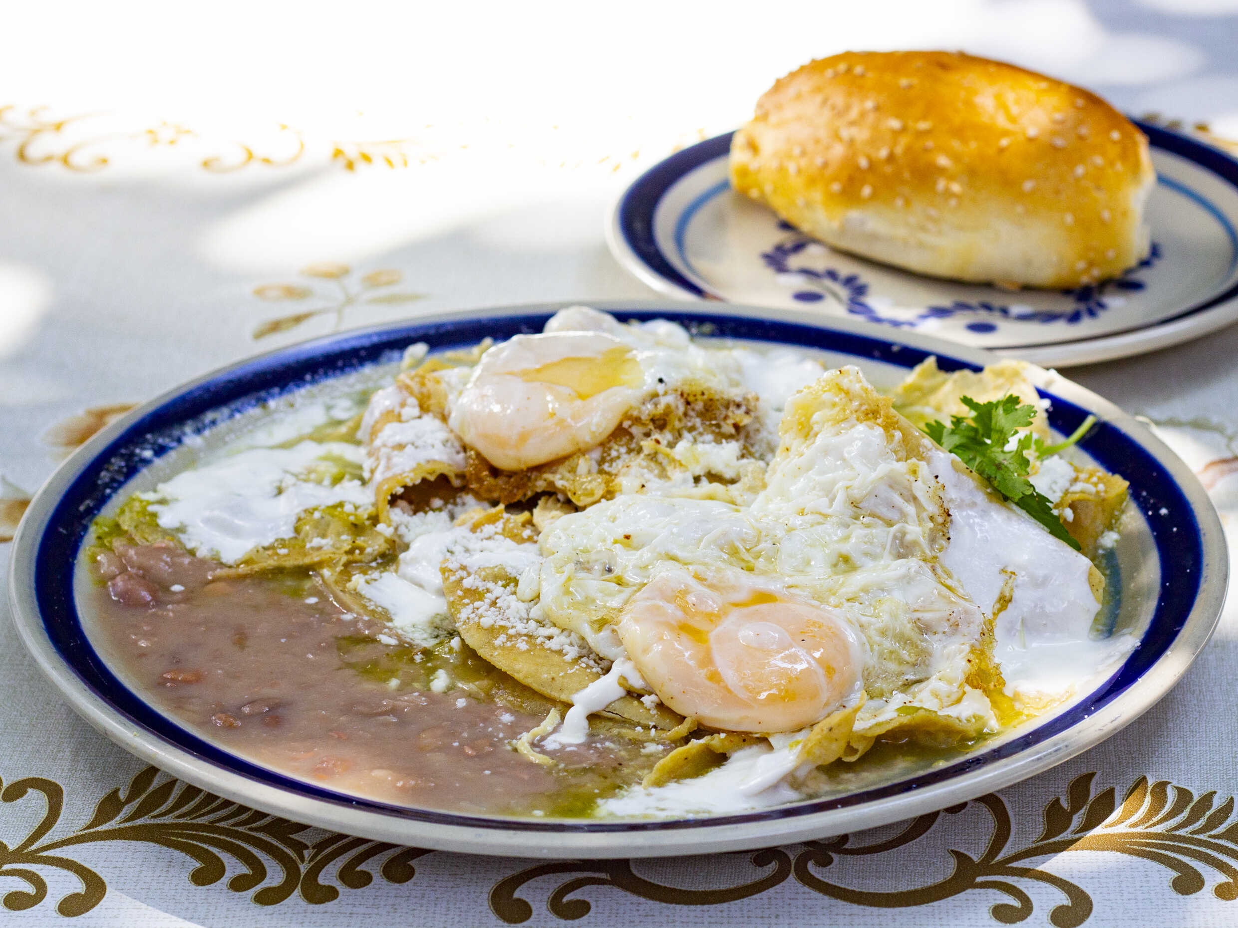 Porción personal de totopos, salsa a tu elección, la proteína de tu preferencia, bañados en crema, queso y frijoles. Es un platillo personal.