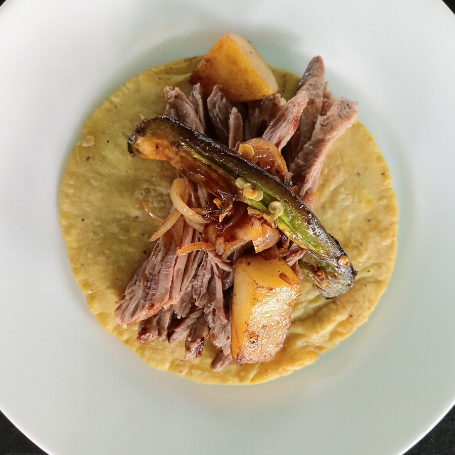 jugosa carne de res de la casa, Salchicha, Jitomate, Lechuga, pepinos, Cebolla, chiles toreados, aderezo de la casa y salchipapas