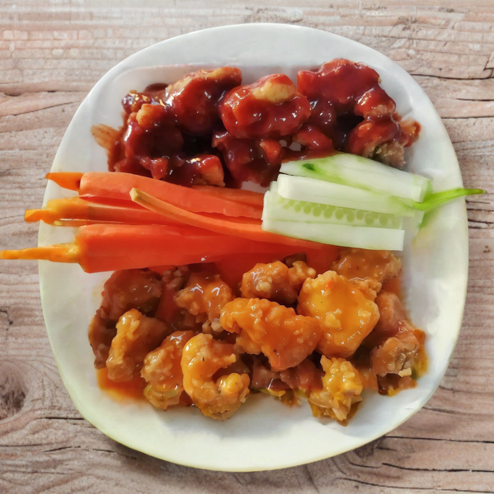 200 Gramos de boneless, vegetales y aderezo.