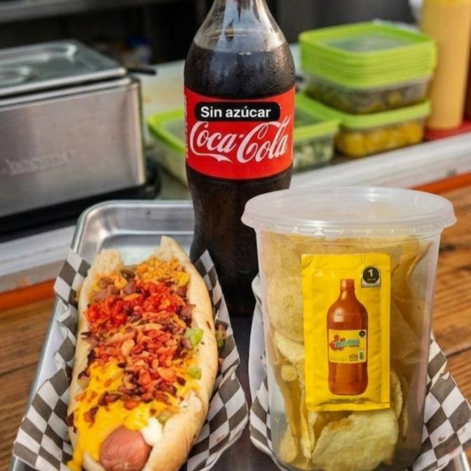 El Dogo*1 + Coca Cola sin Azúcar 600 ml*1 + Papas Hojuela Natural*1