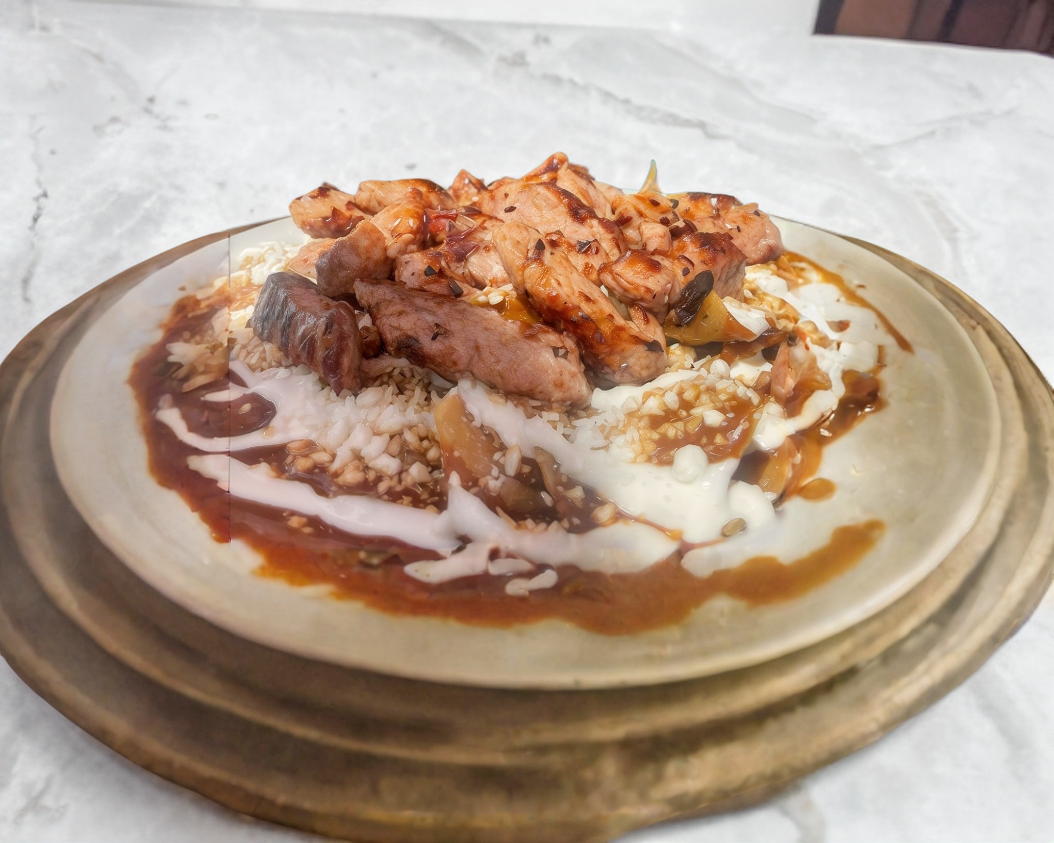 Con crema, queso y cebolla. Salsa a elegir, verde, roja, morita, frijol, mole o guajillo.