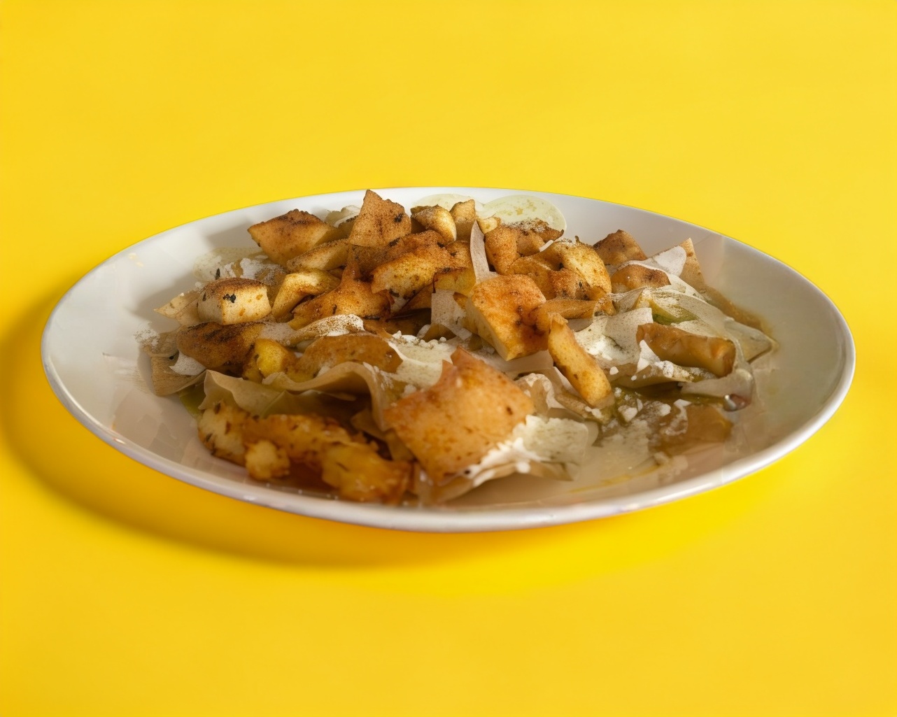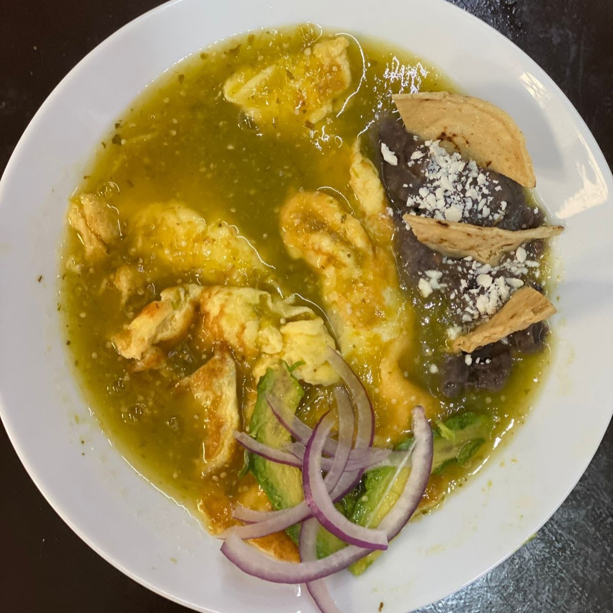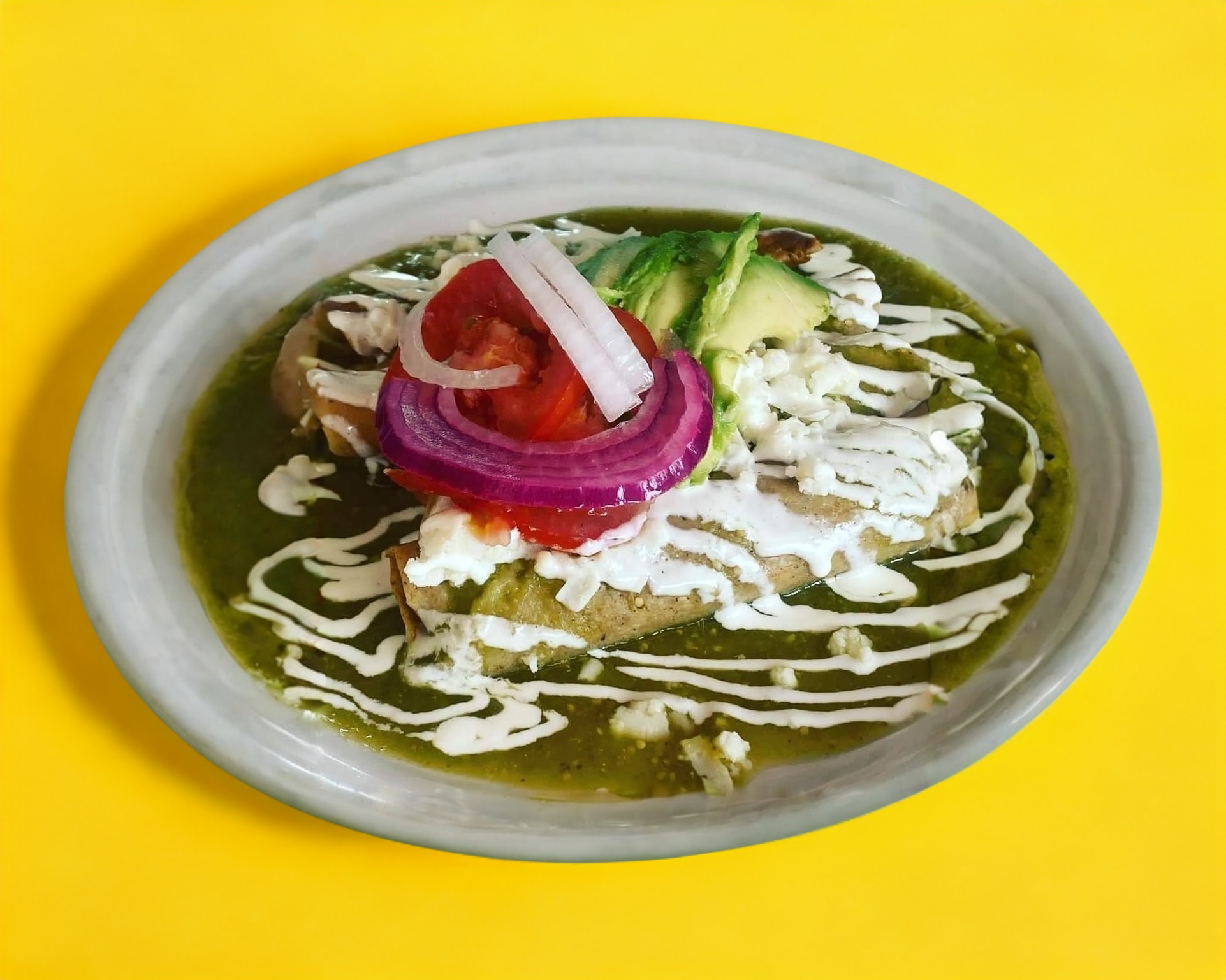 Con crema, queso y cebolla. Salsa a elegir, verde, roja, morita, frijol, mole o guajillo.