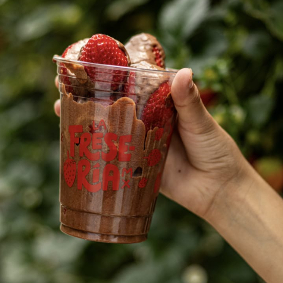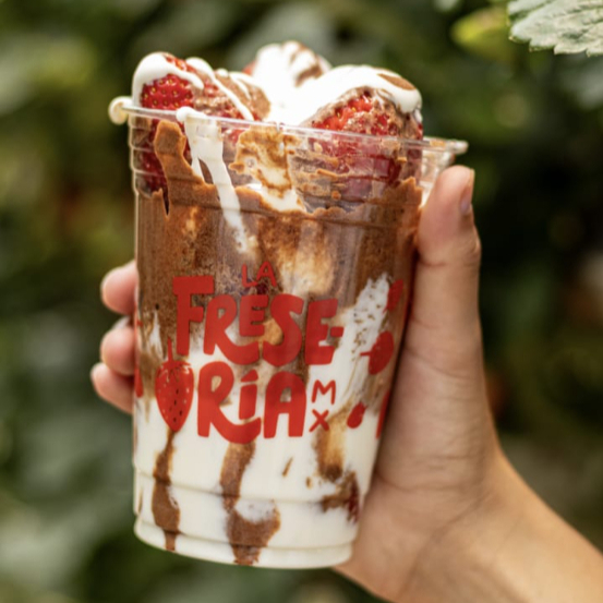150grs de fresa cubiertas con crema de la casa y 2 toppings a elegir