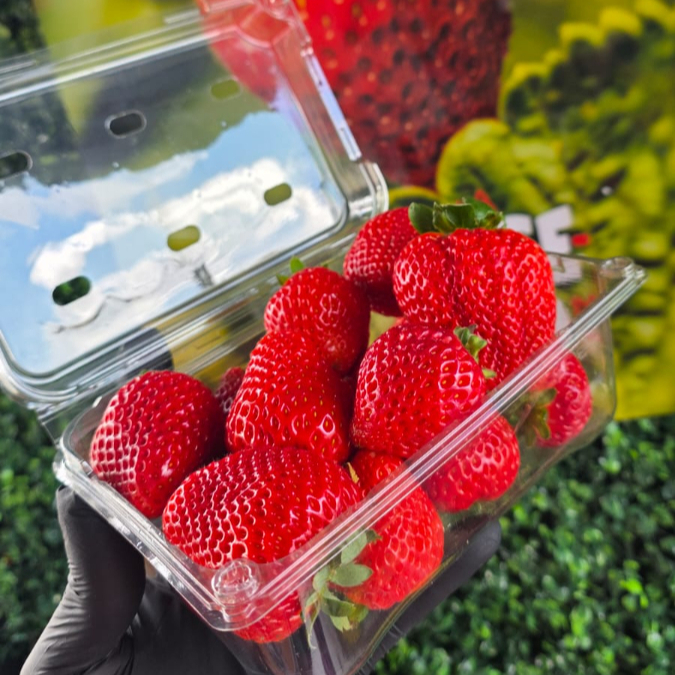 200grs de fresa cubiertas de crema y chocolate a elegir y 2 toppings