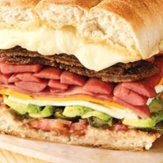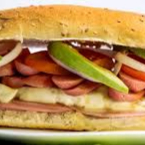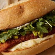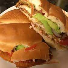 Bolillo doble, pechuga de polo empanizada, queso mozarella, mayonesa, mostaza, jitomate, cebolla, aguacate, chiles.cate
