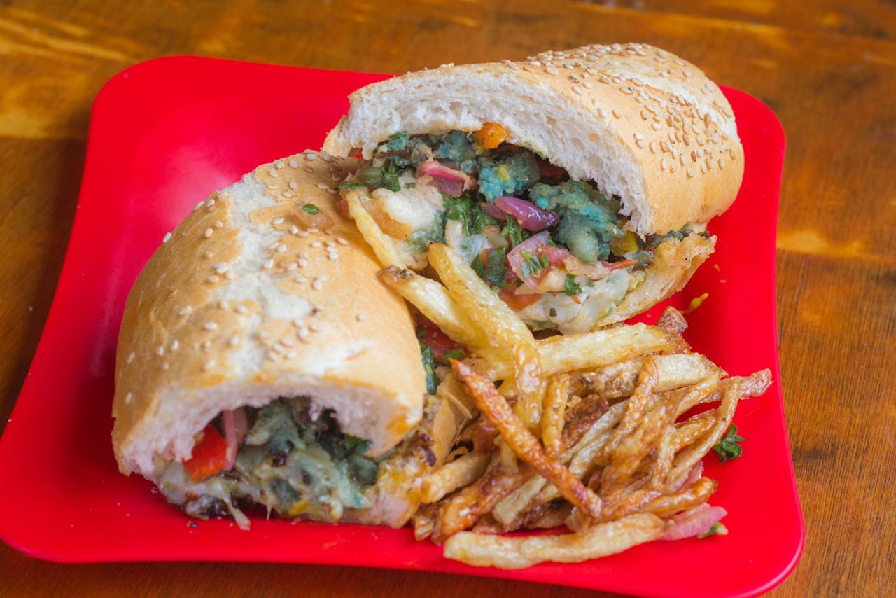 Acompañada de papas, cebollas, nopales, tortillas y limones.