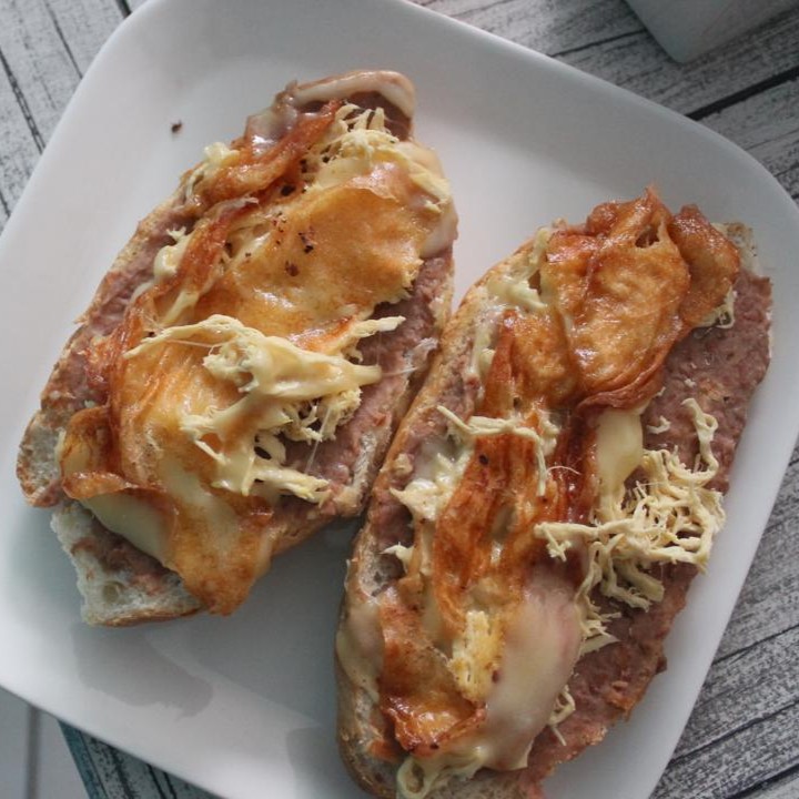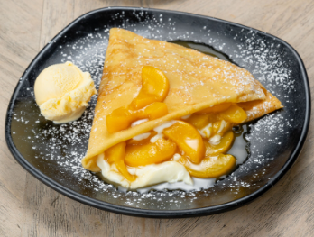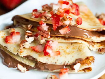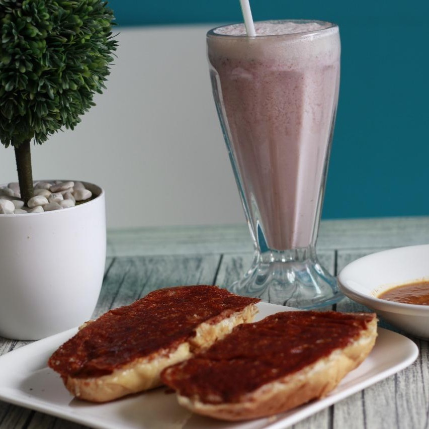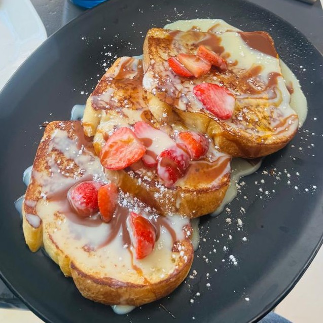4 piezas de pan blanco (un huevo, pizca de azucar, canela y chorrito de leche) lleva una fruta puede ser fresa, platano y un jarabe, lechera, chocolate)