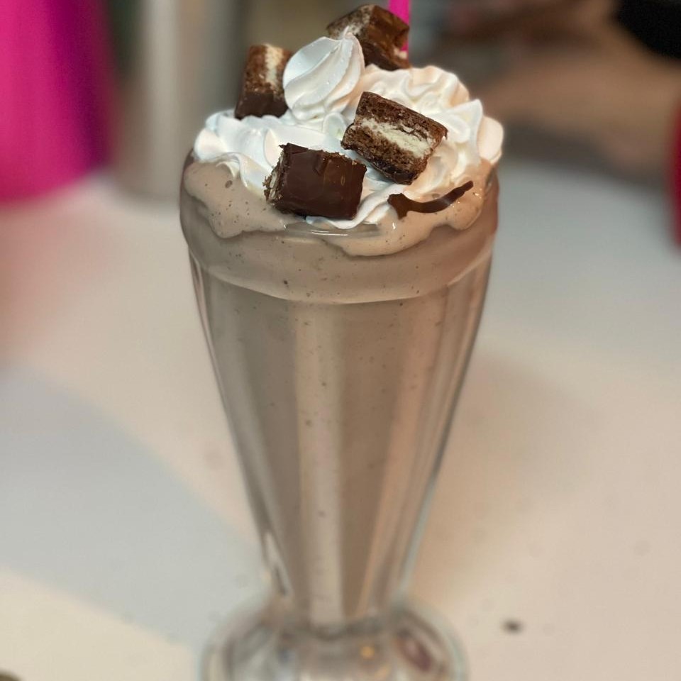 Bebida frapeada sabor a galleta oreo decorada con crema batida