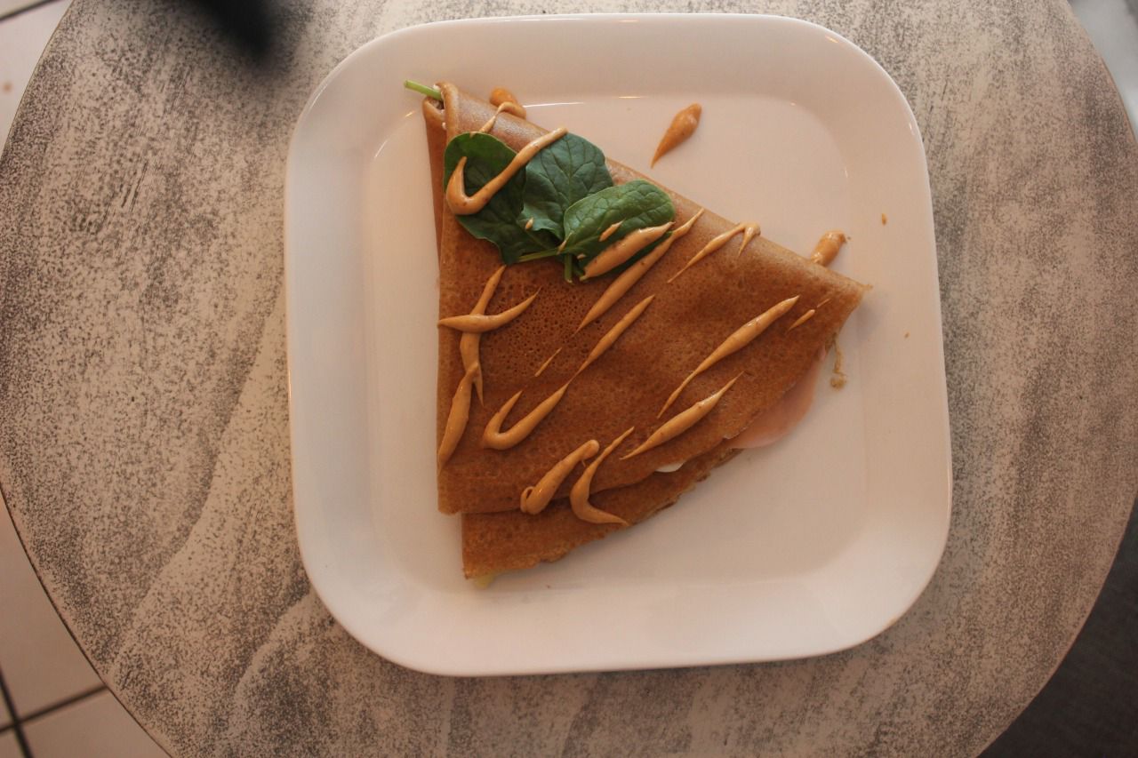 2 piezas de dos tortillas de harina cada uno una rebanada de jamon y una rebanada y media de queso lleva salsa de la casa