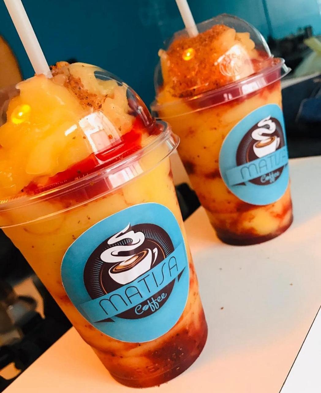 4 piezas puede ser fresa, platano o durazno lleva un jarabe lechera o cholate o cajeta
