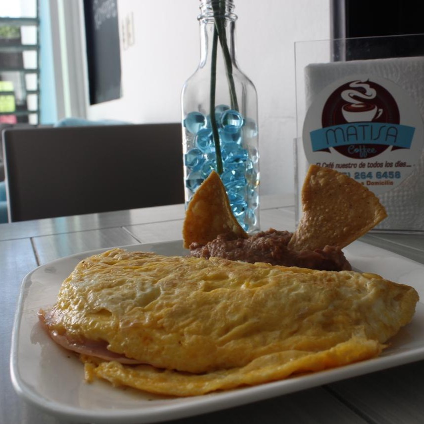 Huevo acompañado de frijoles salsa de la casa, y pan blanco, opciones, huevo con jamon, huevo en chile verde, huevo a la mexicana, huevos rancheros, huevos dovorciados)