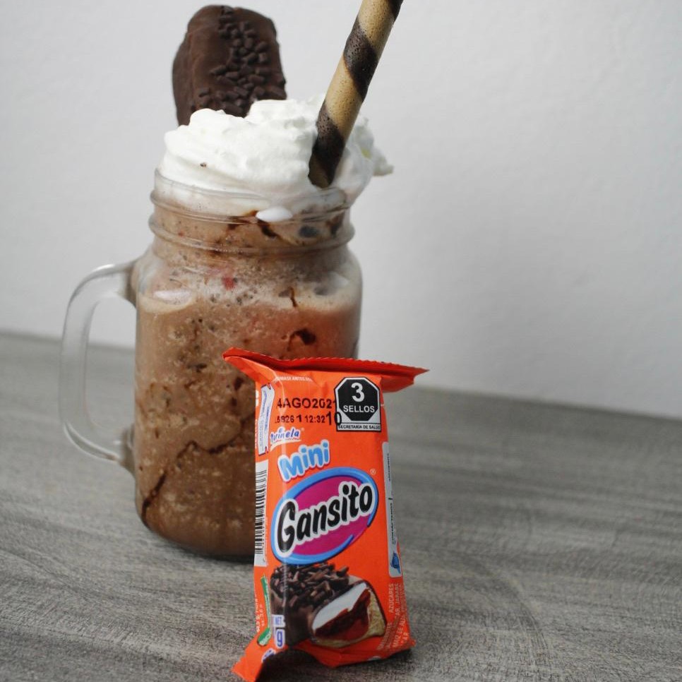 Bebida frappeada con sabor a gansito decorada con crema batida