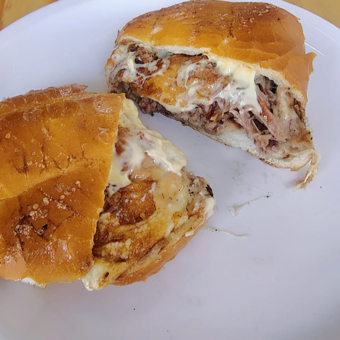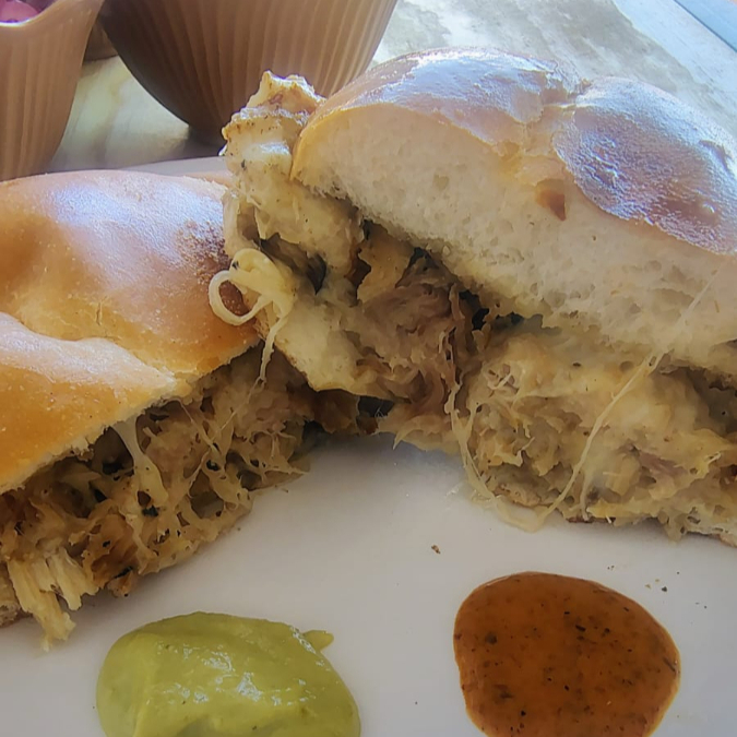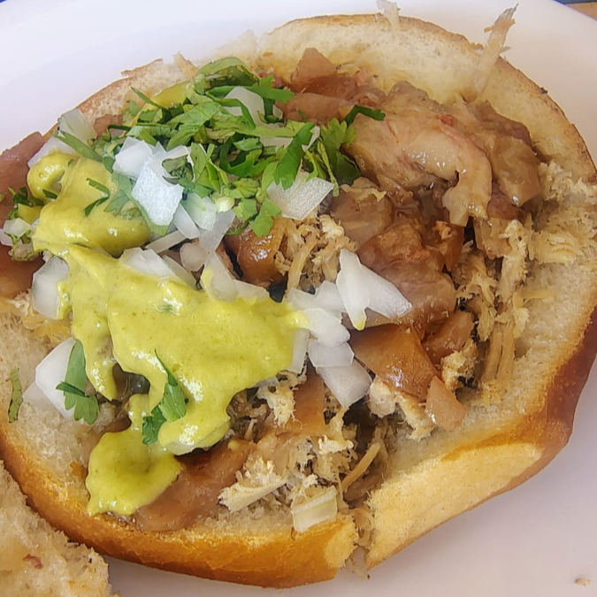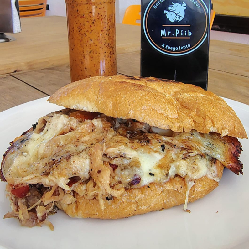 Torta de barbacoa ahuamada de espaldilla con cuerito y queso