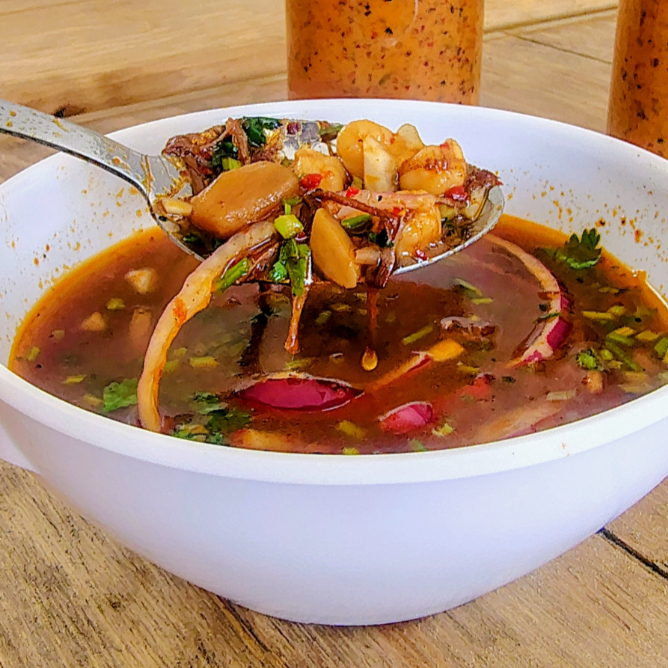 Delicioso consomé con verduras. Hecho con el jugo del costillar de res y mezcla de chiles secos.