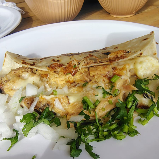 Quesadilla con barbacoa ahuamada de lomo, en tortilla de harina
