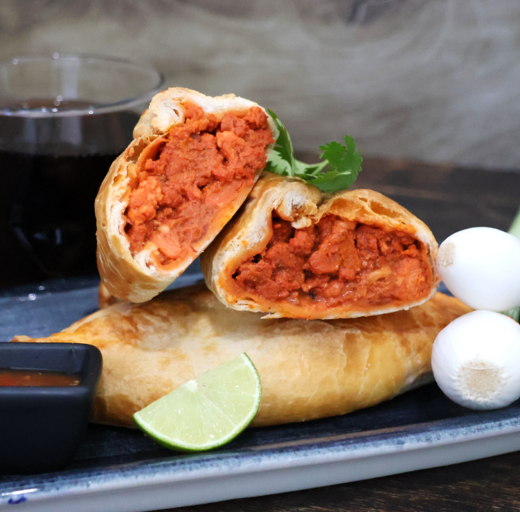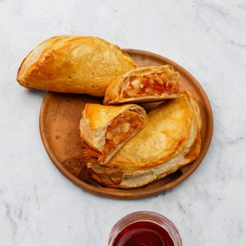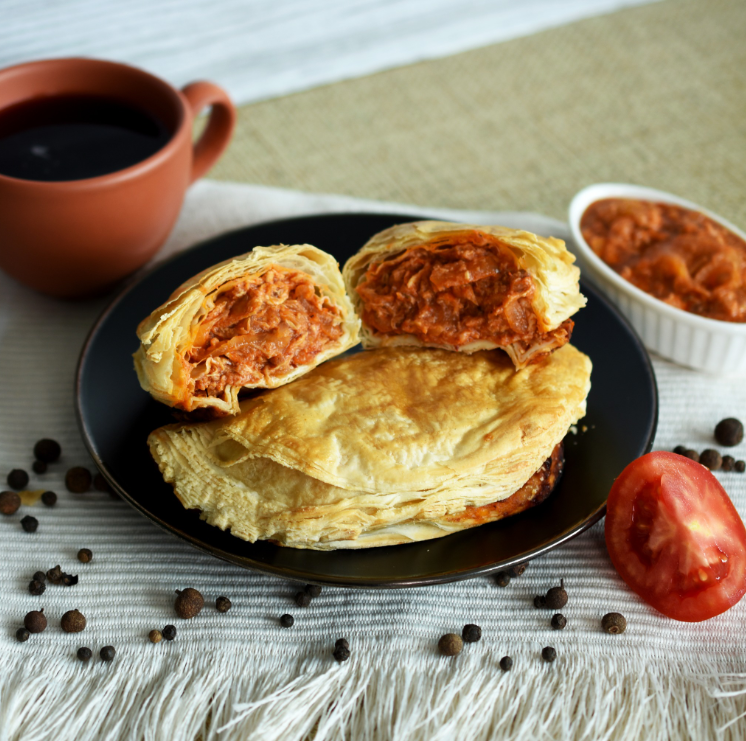 Paste con tinga de pollo, chipotle y masa de hojaldre.