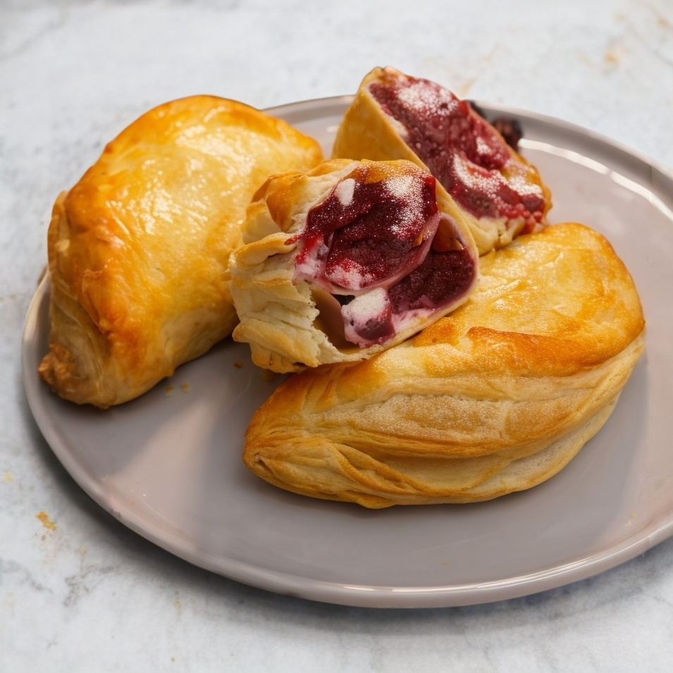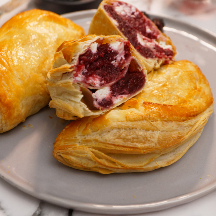 Paste con zarzamora, queso Philadelphia y masa de hojaldre.