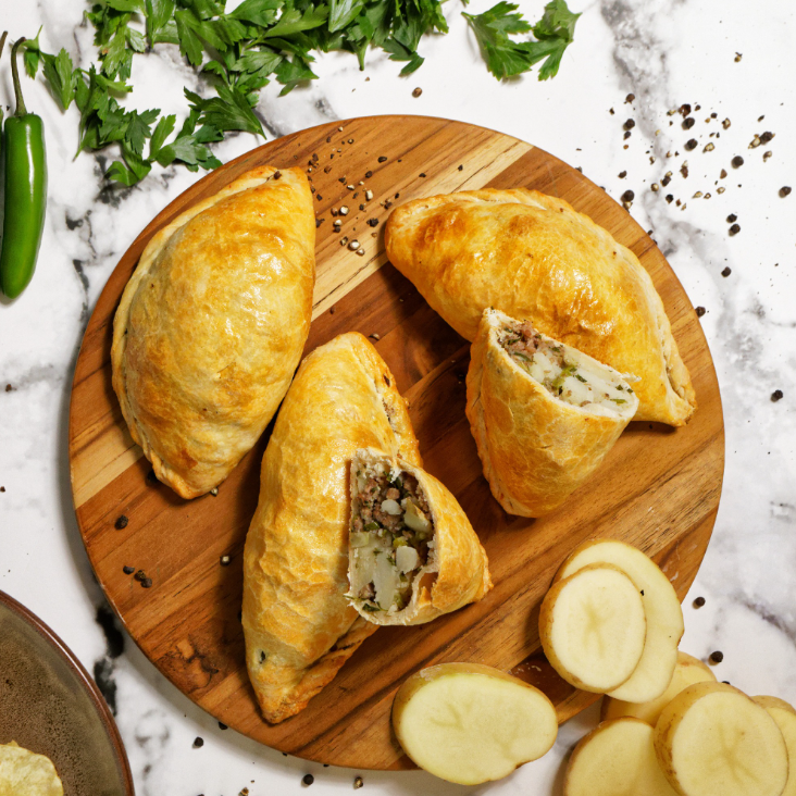 Paste de papa con carne, toque de picante y masa tradicional de la casa.