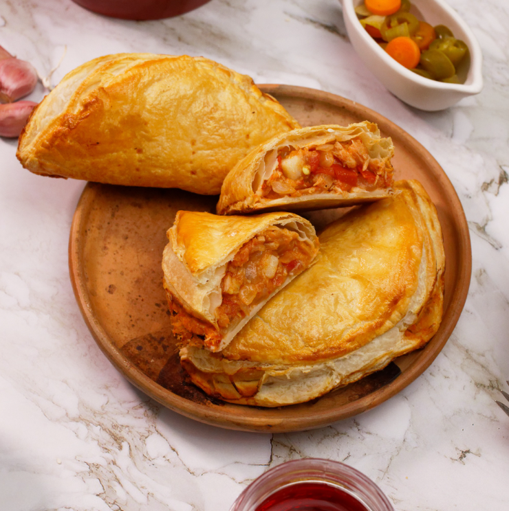 Empanada de atún con papa, un toque picante y horneada con masa de hojaldre.