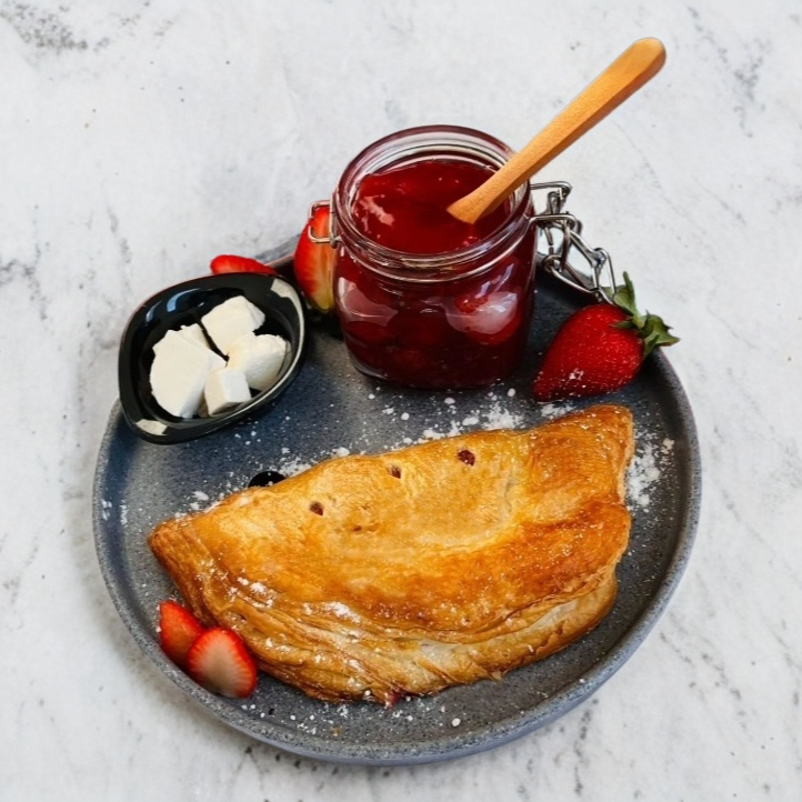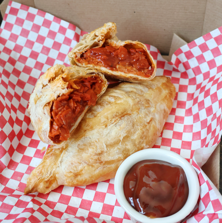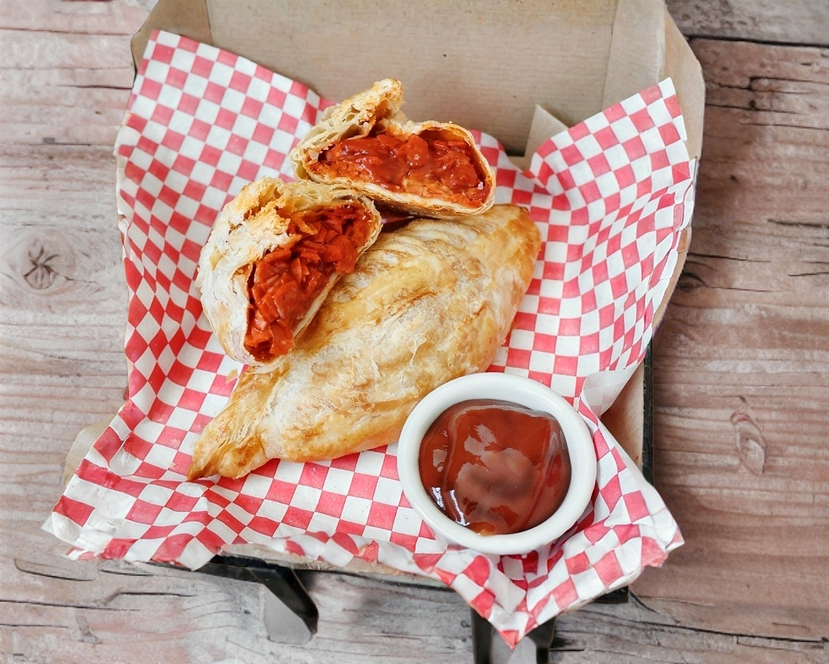 Delicioso paste de pepperoni con queso gouda y salsa de tomate, horneado en masa de hojaldre(1 Pieza)