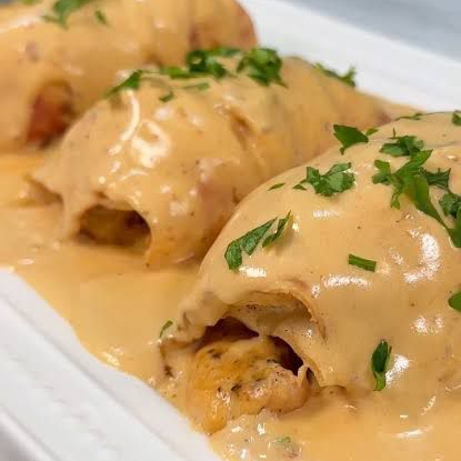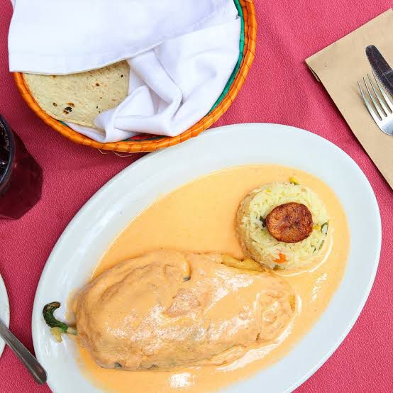 Rellenos a la Crema Acompañados de Arroz, Frijoles y Tortillas hechas a mano
