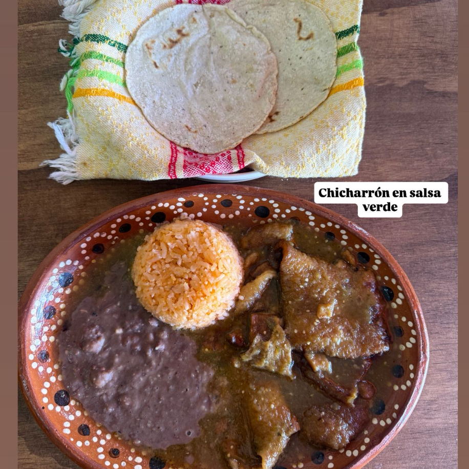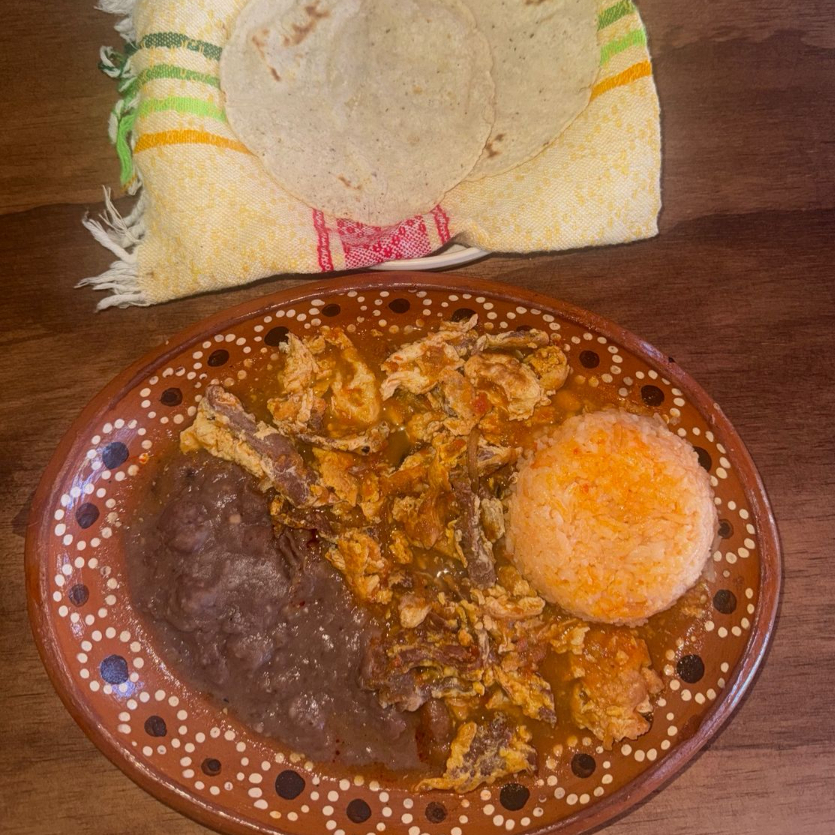 Acompañado de Arroz, Frijoles y tortillas hechas a mano.