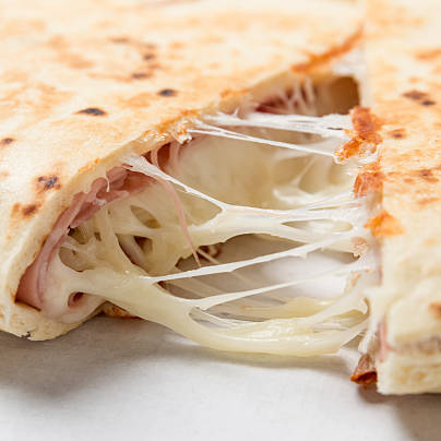 TORTILLA DE HARINA , QUESO , JAMON , ACOMPAÑADO DE ENSALADA
