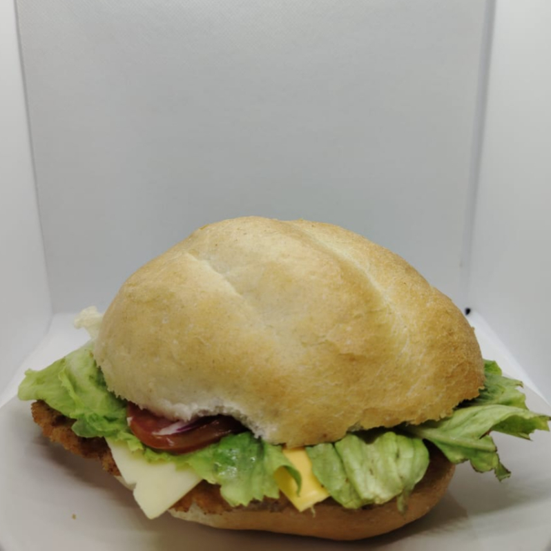 Milanesa de Pollo, queso manchego, queso amarillo, jitomate, cebolla, aguacate, cebolla