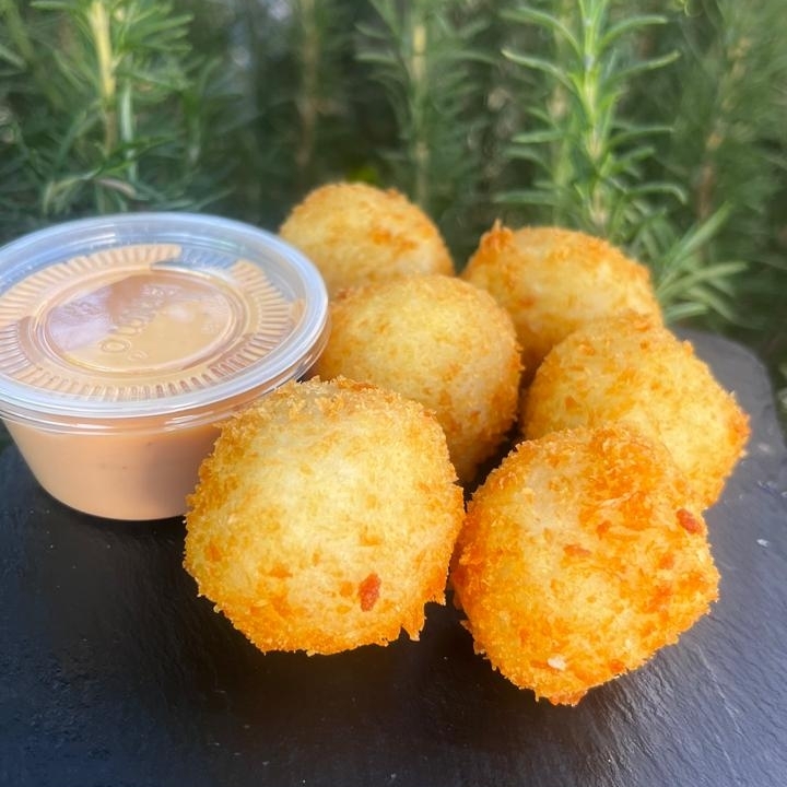 12 pzas De camarones empanizados, acompañados de aderezo de chipotle.