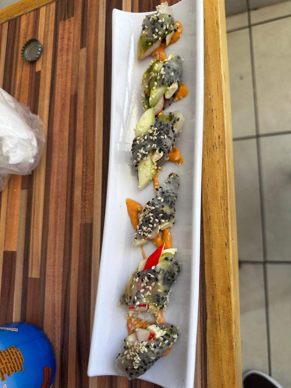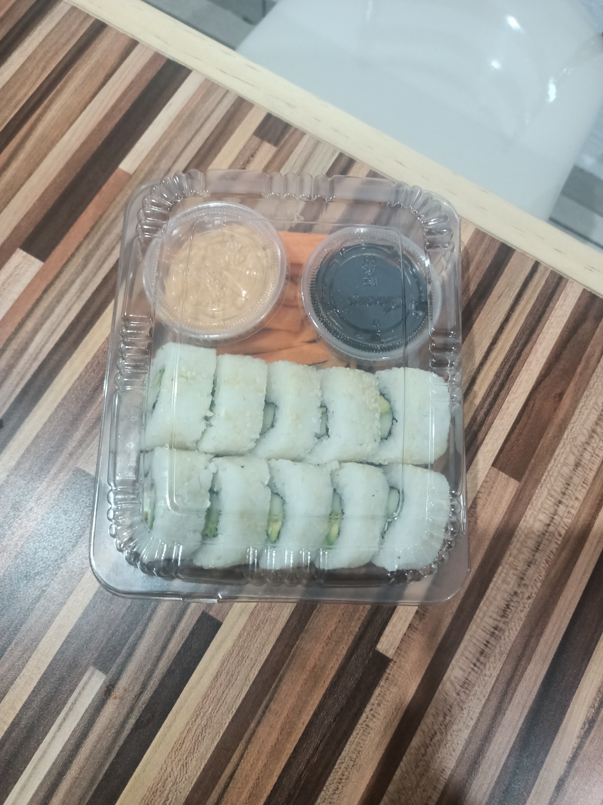 Escoge tu favorito (Entre: California, Mango Roll, Surimi Roll, Alga por fuera, Coco loco, Luna Roll, Camarón, Frutal, Aguacatoso ó Salmón )