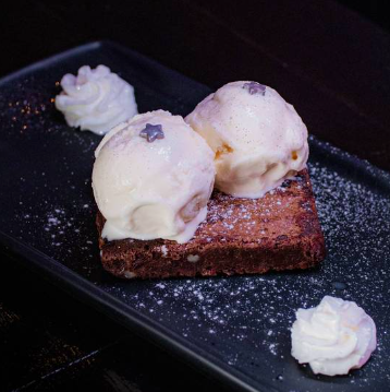 Brownie de Chocolate Turin con Nuez y helado de Vainilla.