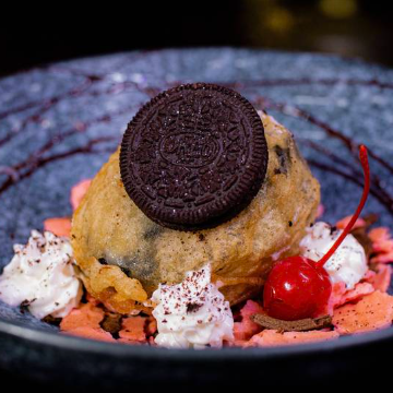 Helado frito al estilo Japones, Crema batida y chocolate Hershey®