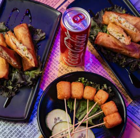 Bebida Embotellada a Escoger*2 + Rollos Primavera*2 + Kushiague Manchego*1