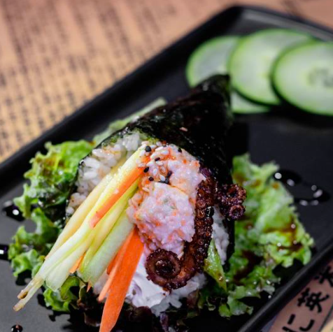 Triangulo de Arroz Japones Relleno de Pulpo Y Tampico, Philadelphia, Aguacate.