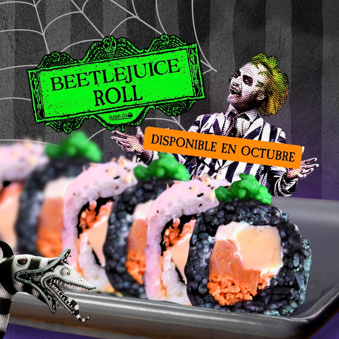 Por fuera Queso Oaxaca, Atún Fresco, Aderezo Chipotle, Cebollín y Ajonjolí, por dentro Aguacate, Pepino, Zanahoria y Queso Philadelphia.
