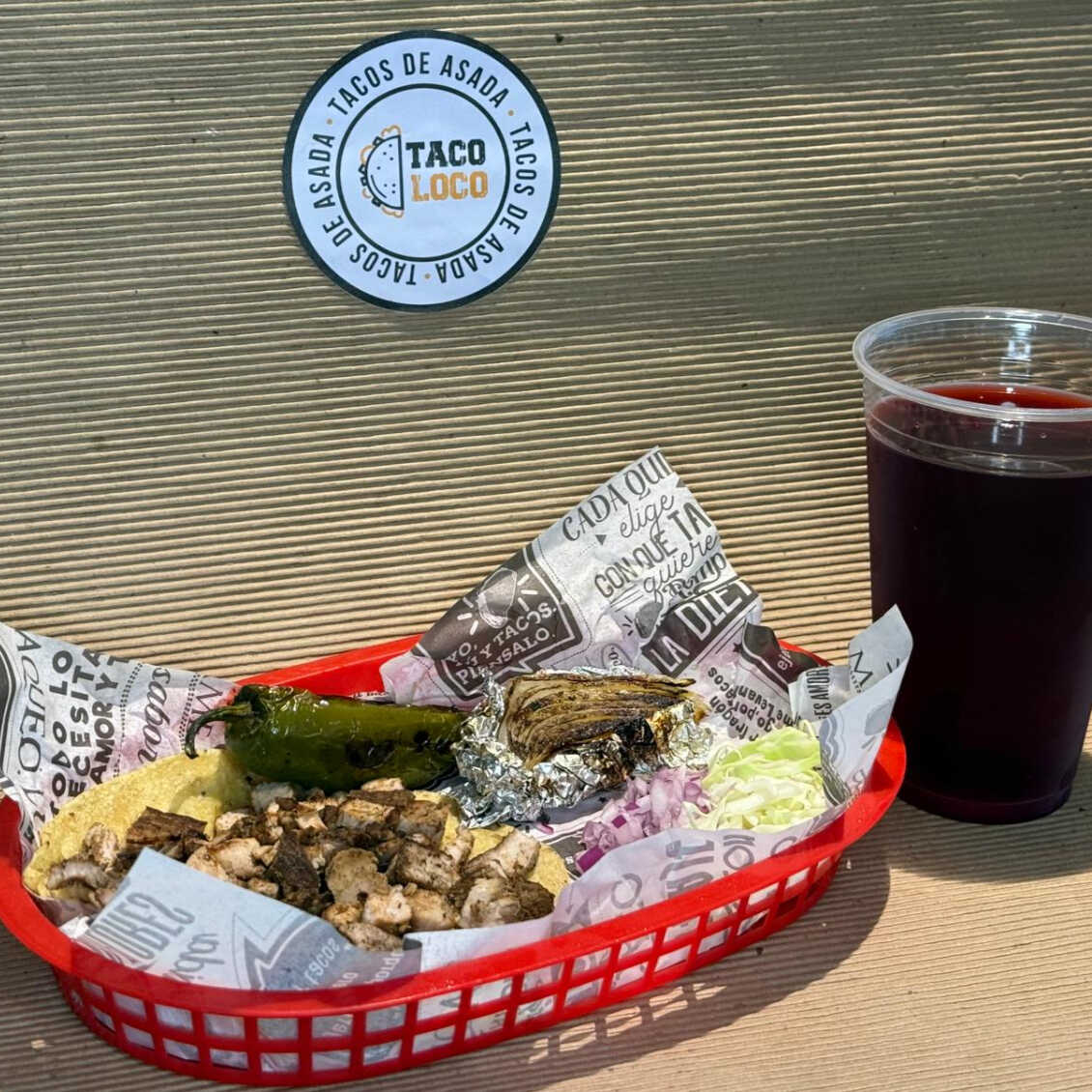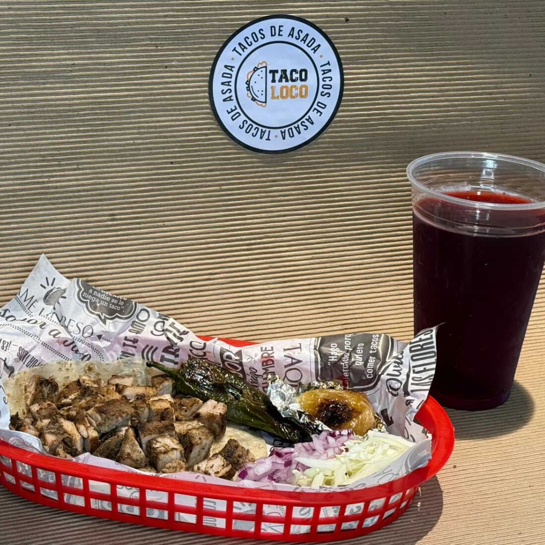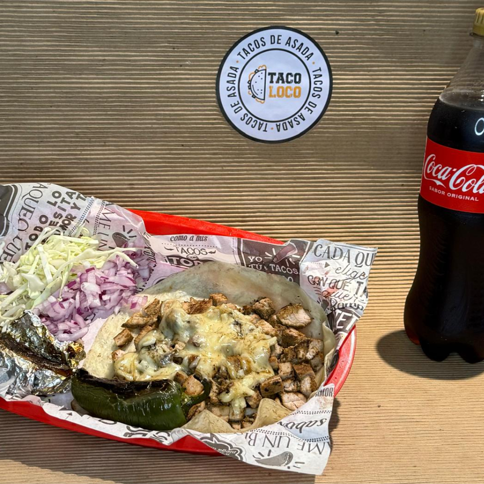 Taco de asada al carbon, con queso en tortilla de maíz nixtamal.