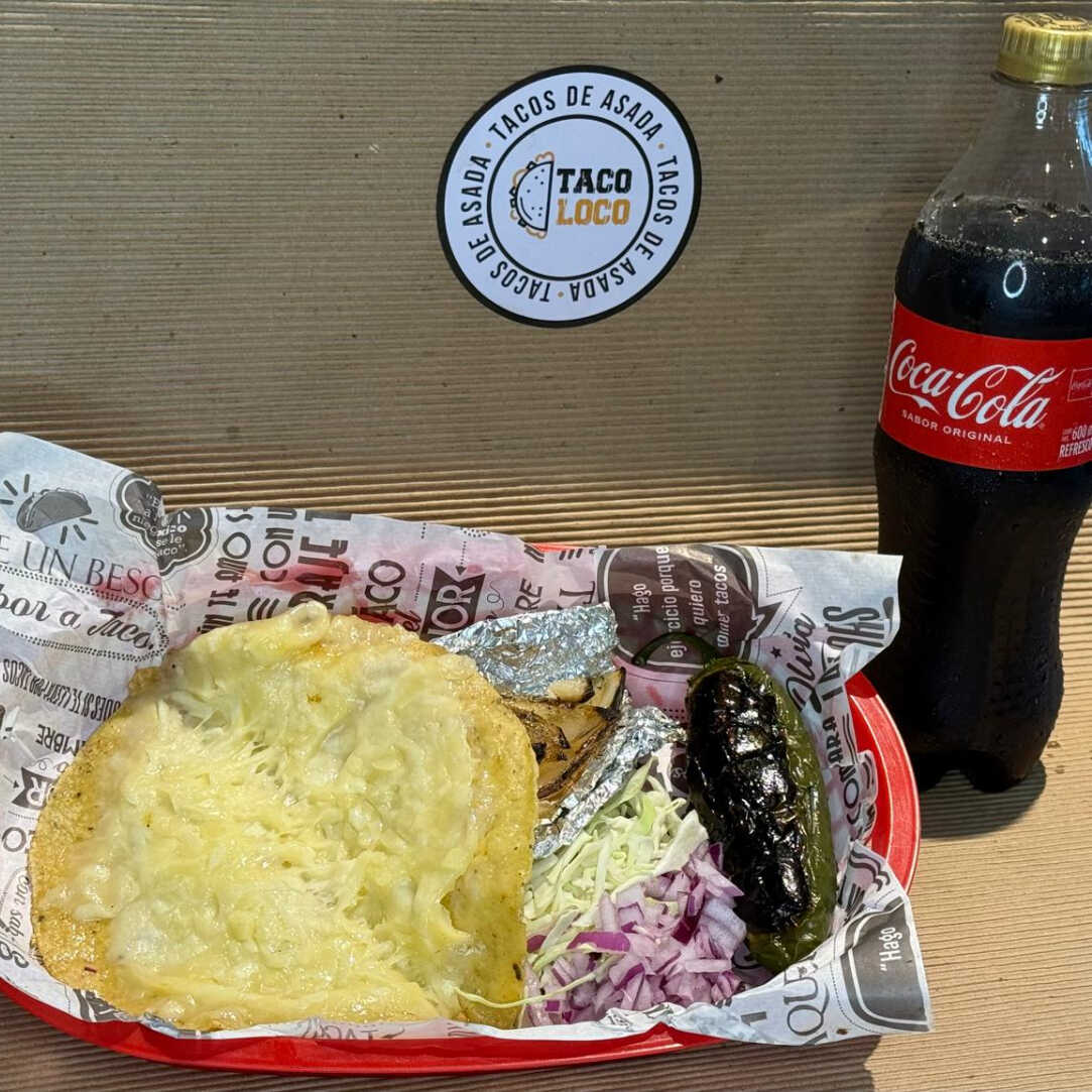 Taco de asada con delicioso queso en tortila de harina sonorense.