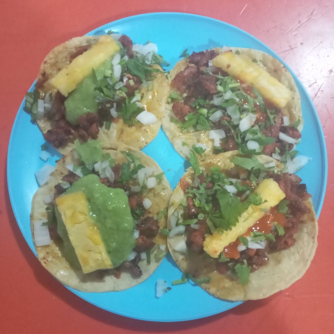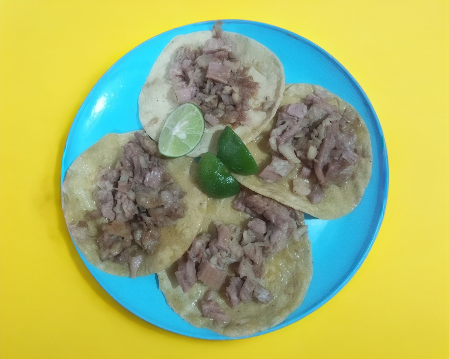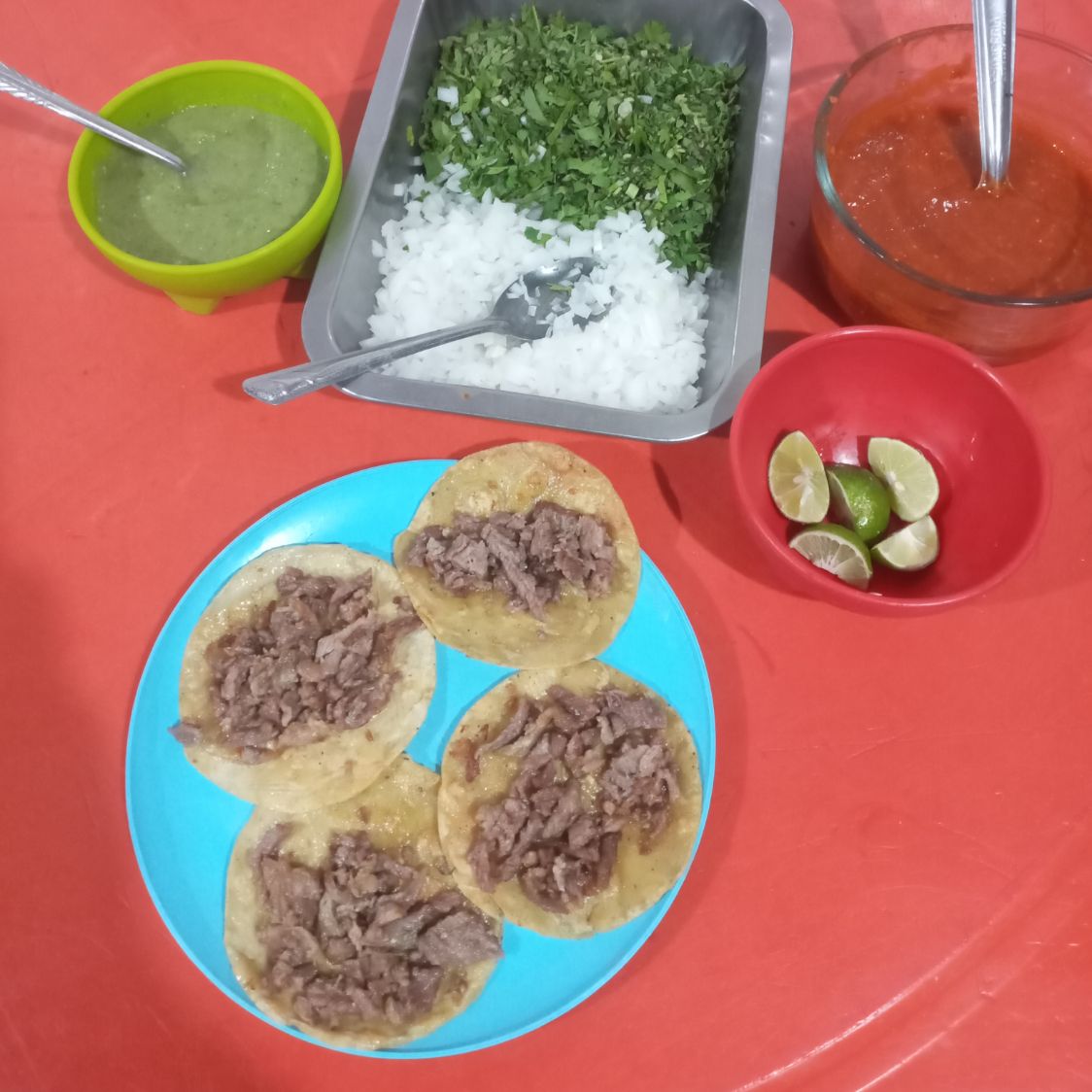 1 Taco de Suadero personal ,contiene una tortilla de maíz , carne de suadero , Aparte cebolla ,cilantro , salsa roja ,verde y limón
