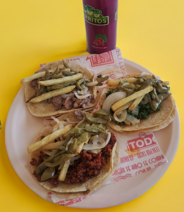 Jarritos 355 ml.*1 + Taco Arrachera*1 + Taco Chorizo Rojo*1 + Taco Chorizo Verde*1
