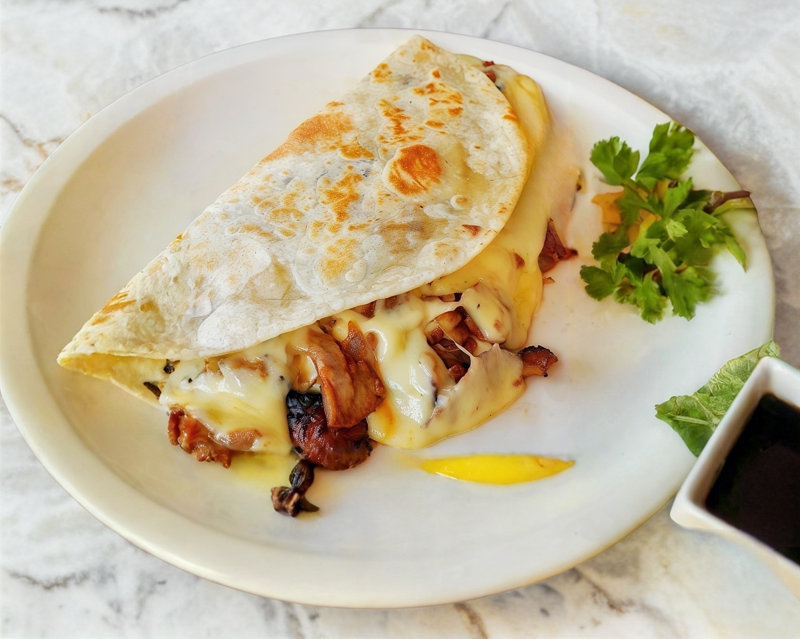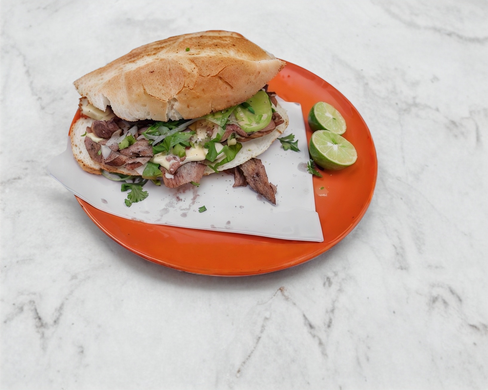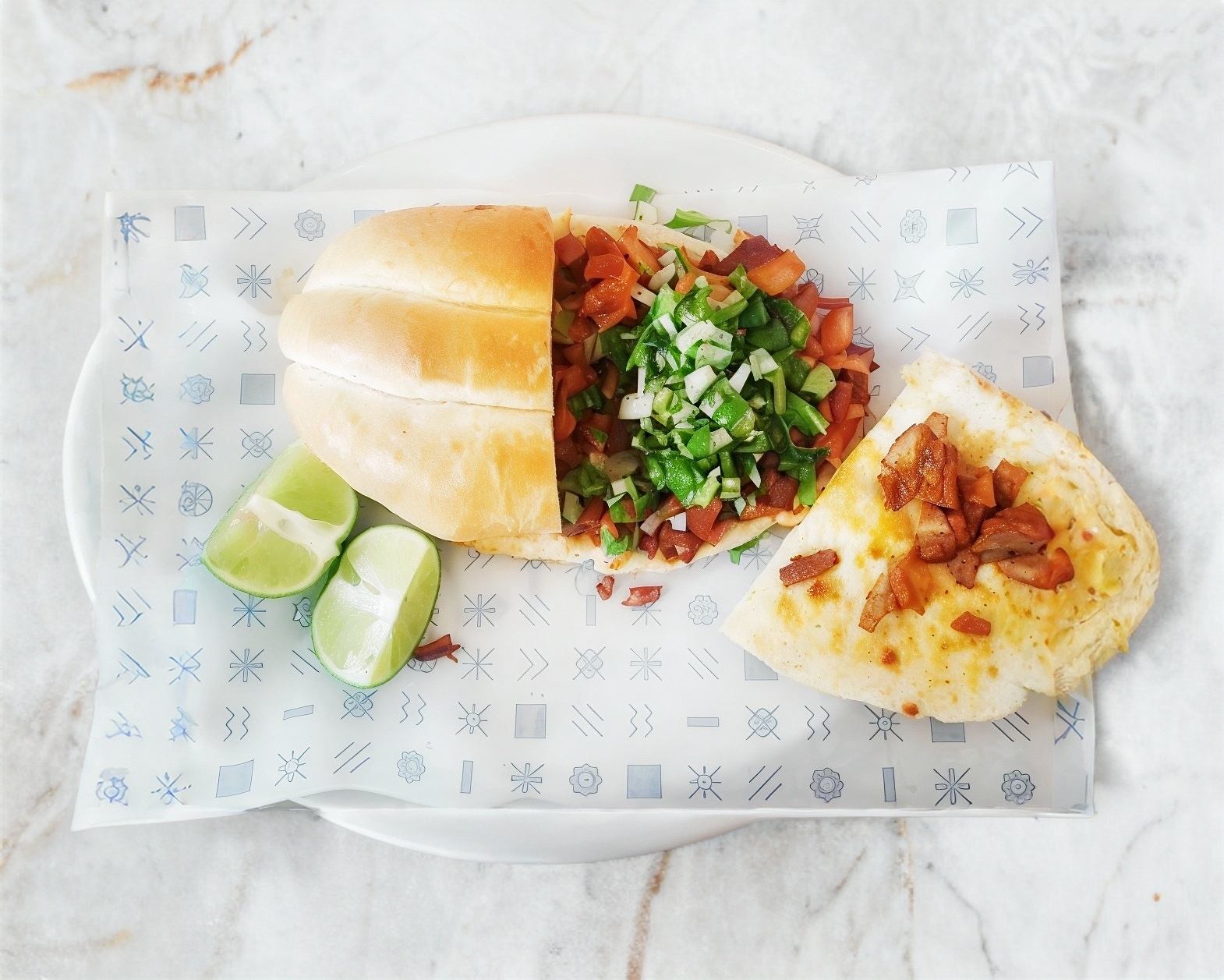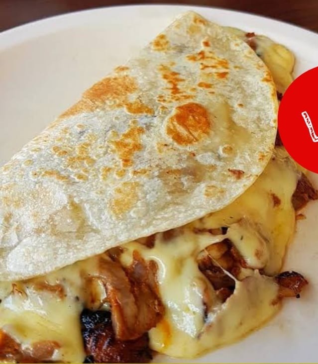 Gringa de bistec y chorizo acompañada de queso oaxaca