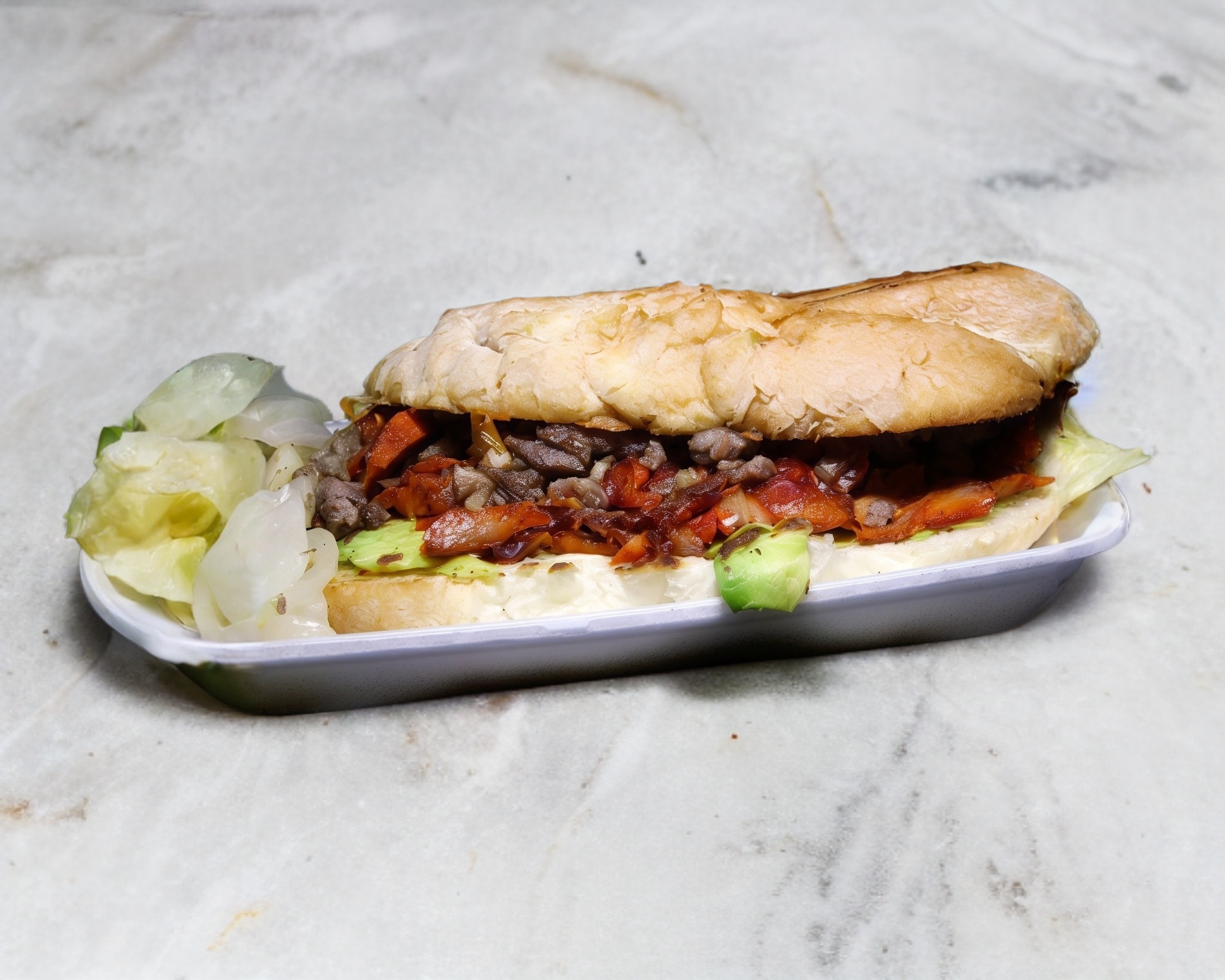 Charola de bistec y chorizo con tamaño a elegir, acompañado de cebolla y cilantro