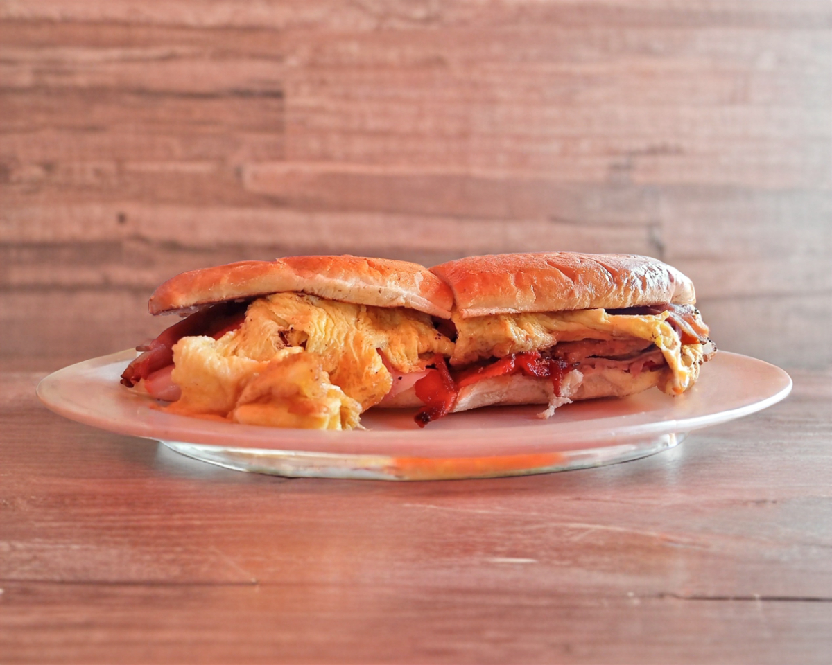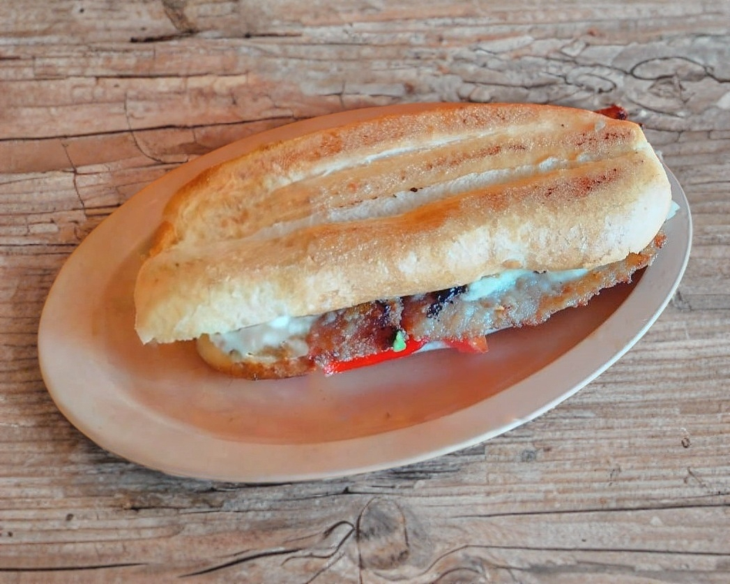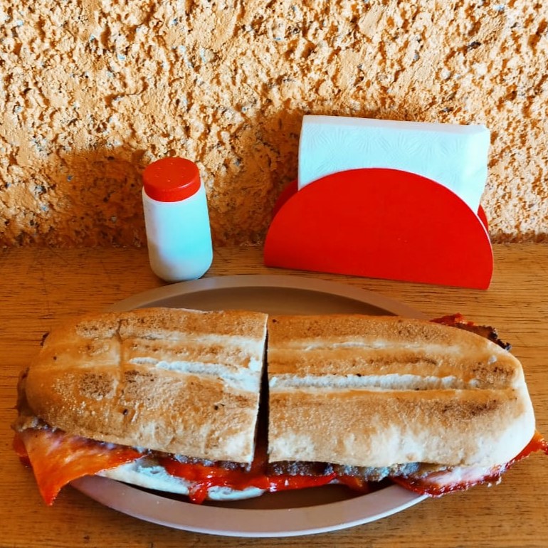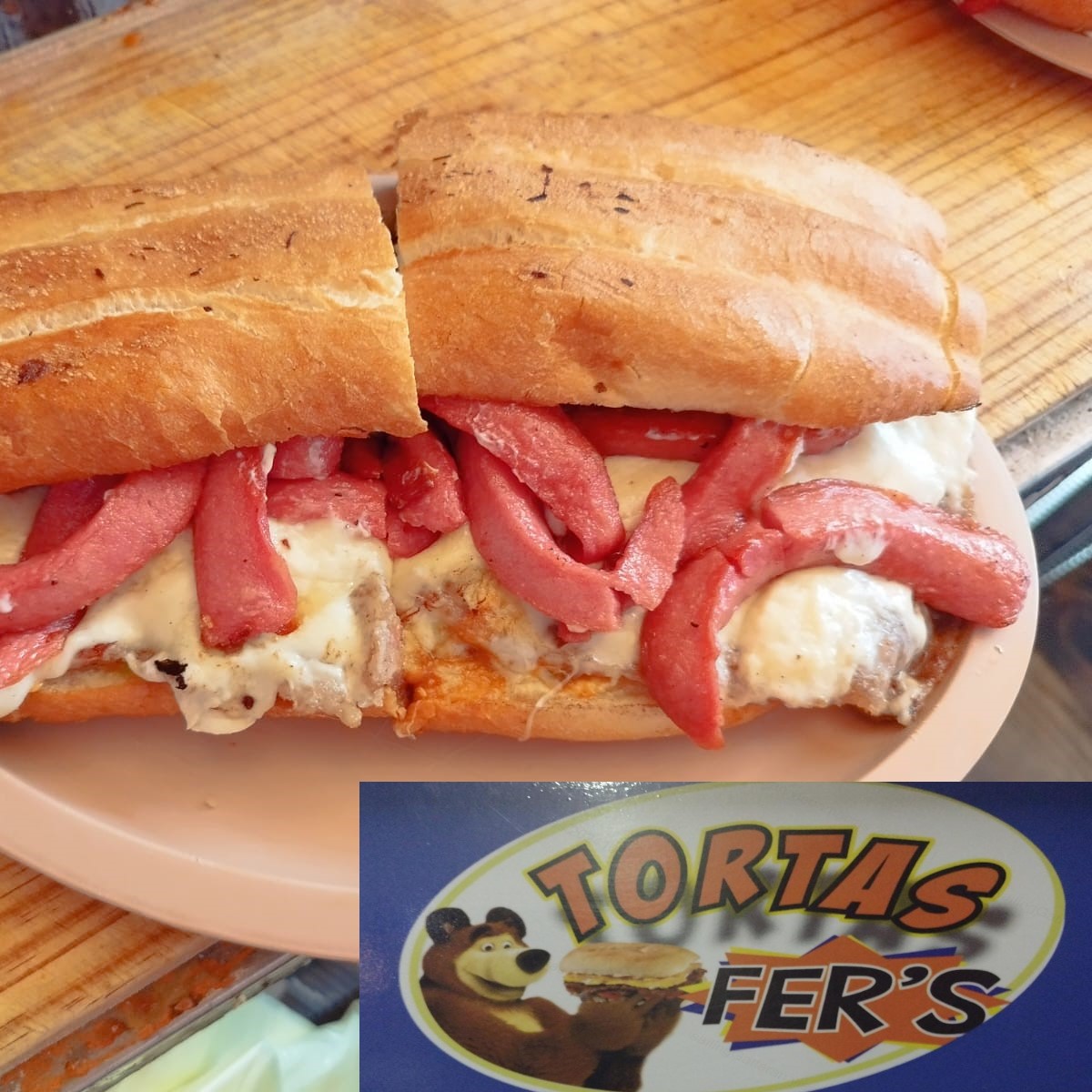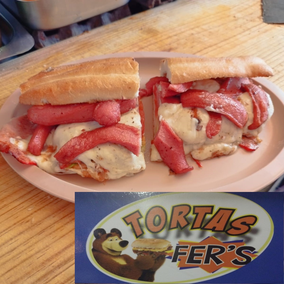 Pierna, milanesa, jamón, salchicha, queso amarillo, queso de puerco y huevo.
